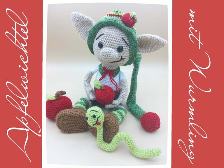 Ich habe den Apfelwichtel mit Woll Butt Versailles und einer 2er Häkelnadel gehäkelt und er hat bei mir eine Größe von ca. 25 cm.