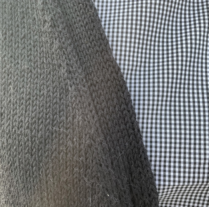 Wolle: 550 g / 600 g / 600 g / 650 g / 650 g Brigitte Nr. 4 von Lana Grossa in Schwarz, Farbe 026, 80 % Baumwolle, 20 % Alpaka (Baby), Lauflänge 110 m = 50 g