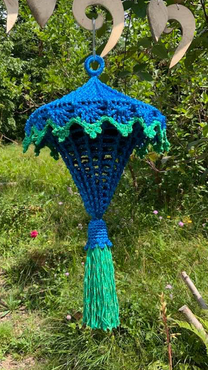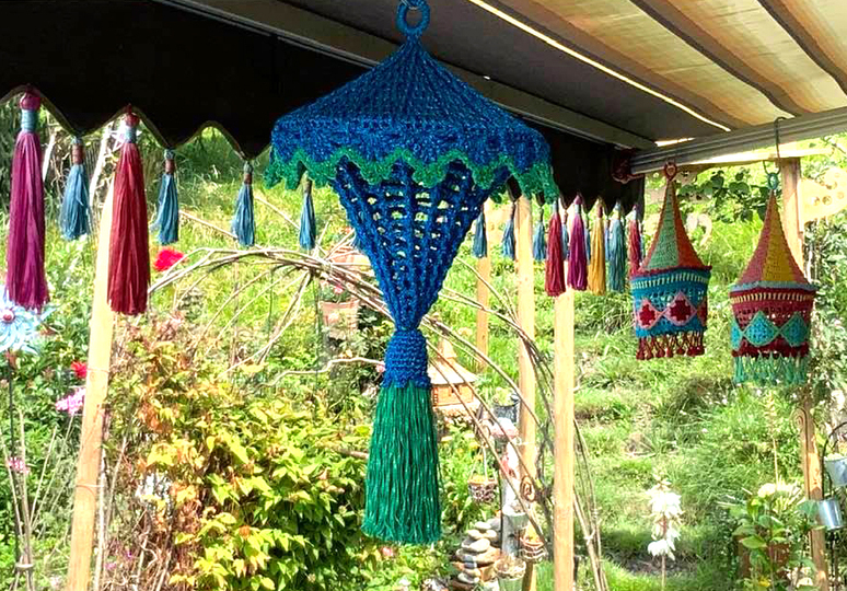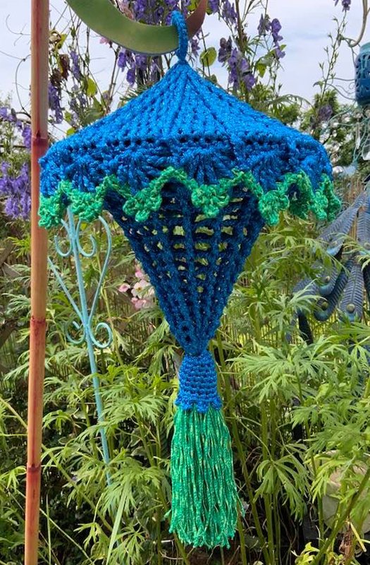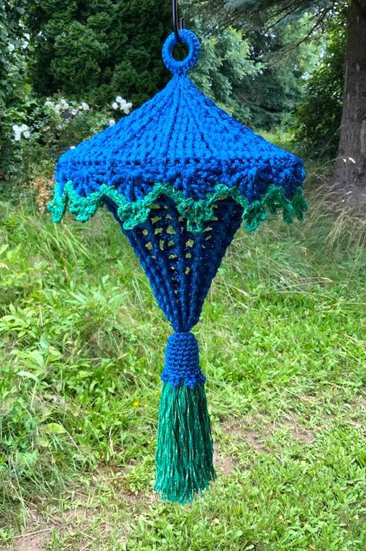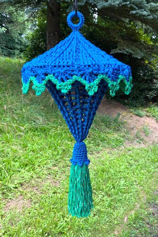 Lampion"Sweet"ist ein echter Blickfang für Garten, Wohnung, Balkon..usw...und macht immer Freude, wenn man hinschaut....kein Wunder: Hat das häkeln selber schon so Spaß gemacht!