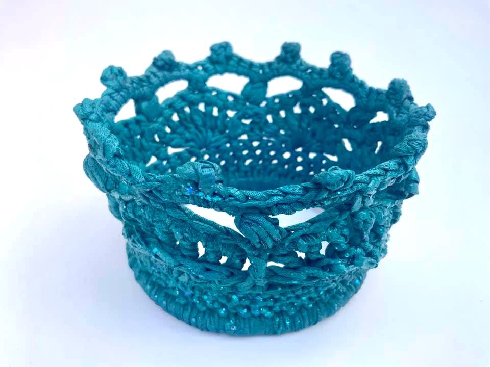 Süßes, kleines Krönchen ...einfach so zum Hinstellen..UM ein passendes Glas und ein Teelicht reinstellen.....oder auf einen Haarreifen nähen...auf eine Mütze nähen...für Deine Puppen oder Bärensammlung...für Dein Haustier...als Tischdecoration...für ein süßes Babyfoto ....und, und und.....