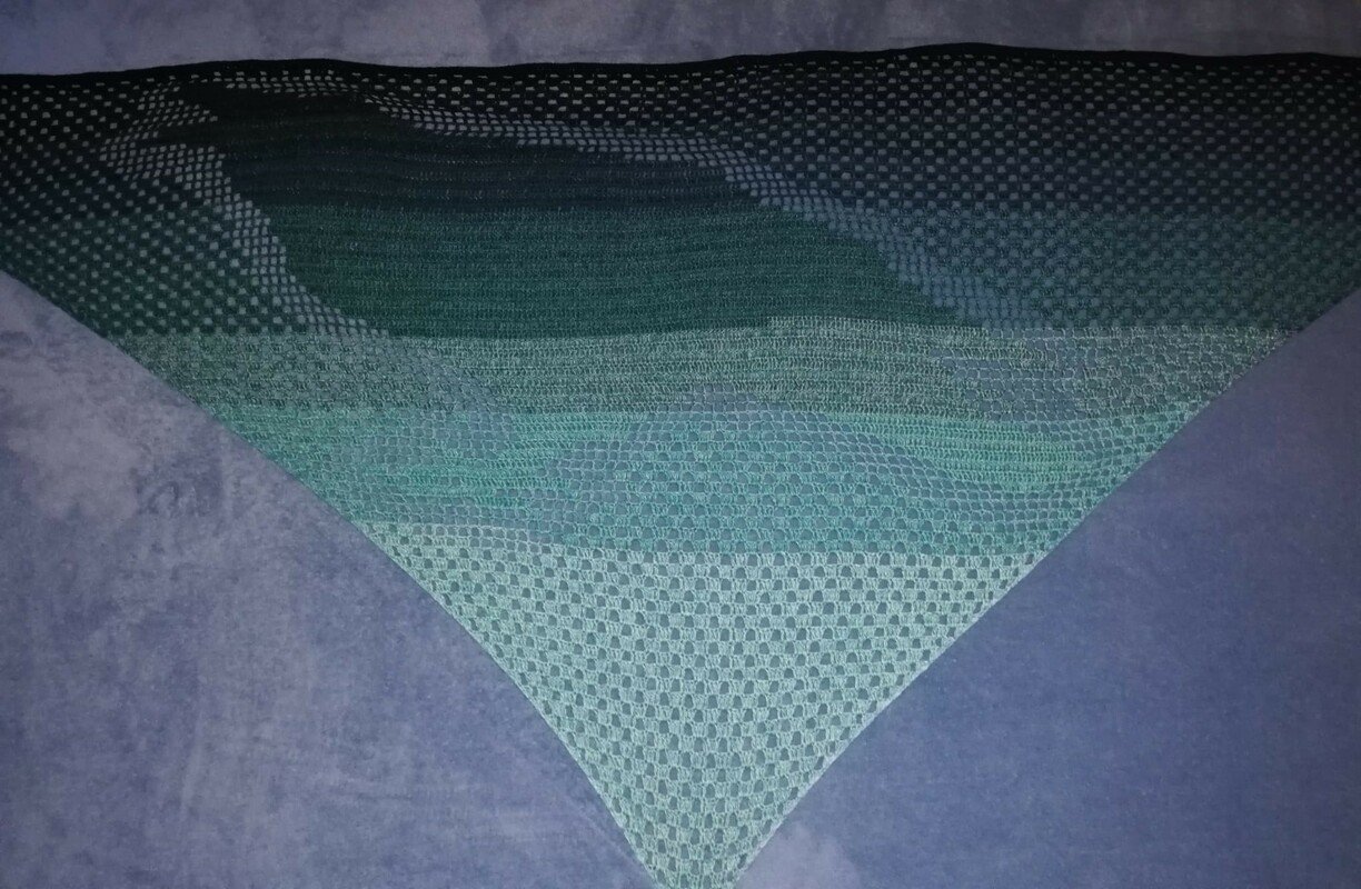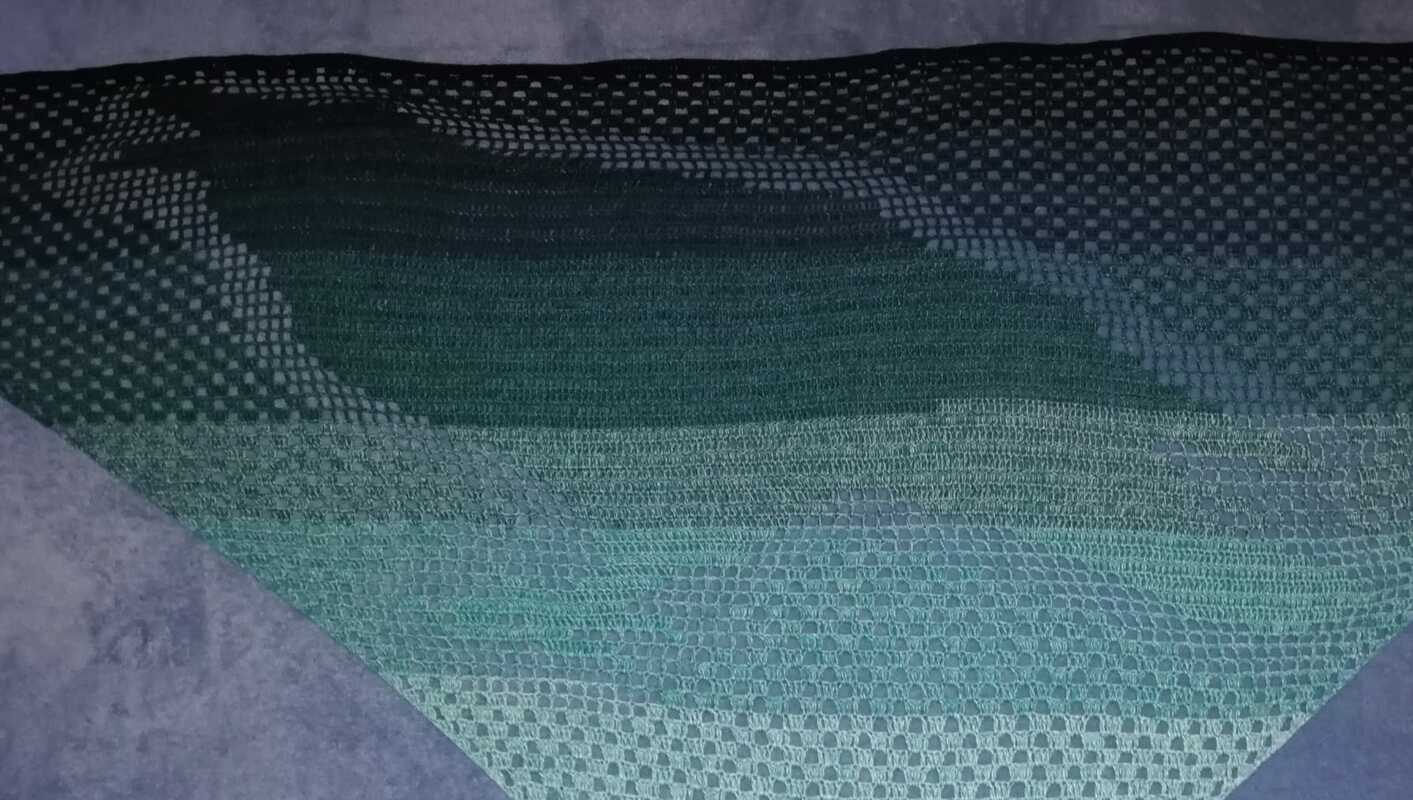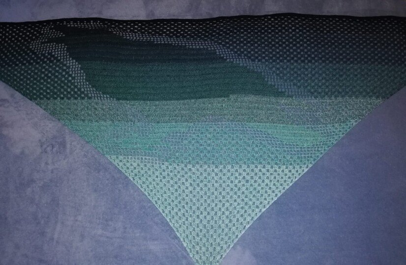 Die Anleitung ist auf 4 Seiten in teilweise Schrift (Erklärung Filethäkeln), der Anfang des Tuches in Pc-Häkelschrift und Zählraster geschrieben.