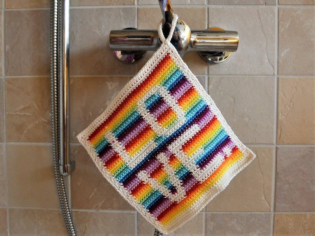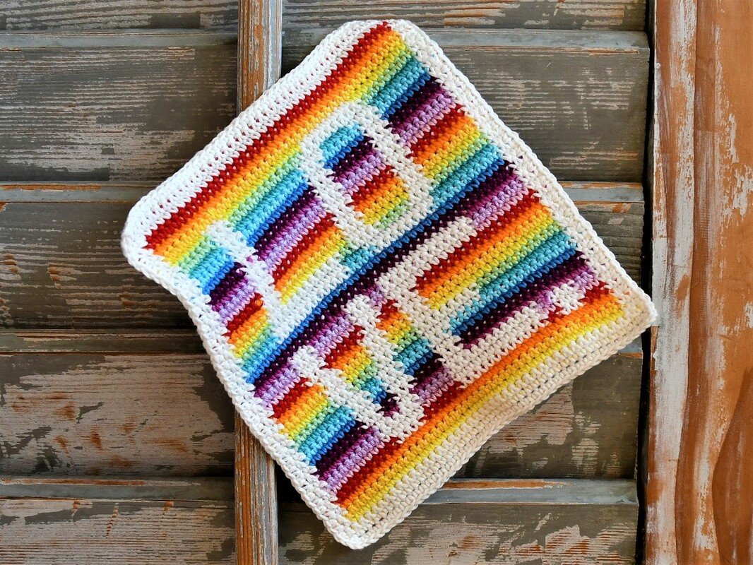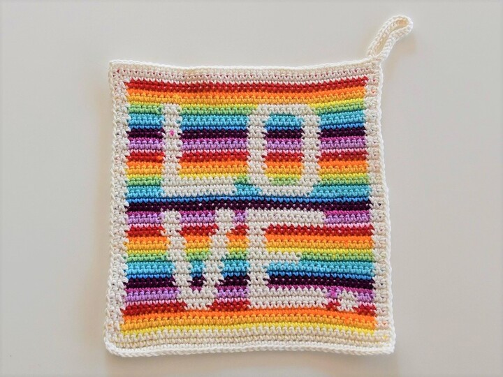 Als kleines Geschenk erhältst Du mit der Anleitung zusätzlich das Häkelschema für das Motiv "LOVE." in kleinerer Ausführung, so dass die Größe gut für ein Spültuch oder einen Waschlappen passt. Keine Angst vor dem Fäden Vernähen bei der Regenbogen-Version - die losen Enden werden einfach mit eingehäkelt :-)