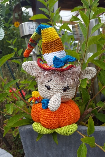 Heute bekommt Ihr die Gelegenheit in Form einer Häkelanleitung, diese lustig bunten Kürbistrolle zu häkeln.