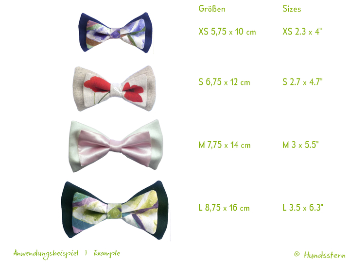 Nähen Sie eine schicke Fliege für Ihren Rüden. Die Fliege wird mit 2 Gummibändern auf das Halsband aufgezogen und kann genauso leicht wieder abgenommen werden.