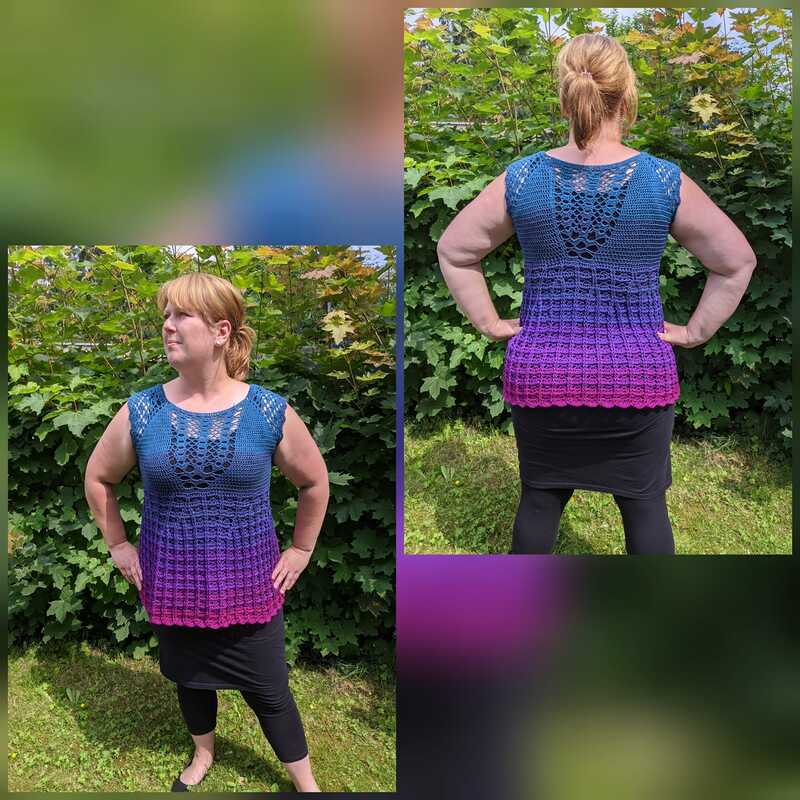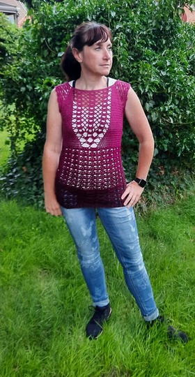 Die Tunika kann individuell in jeder Damengröße und Länge gehäkelt werden. Sie wurde in den Größen 36 bis 50 getestet. Schau dir dazu die Fotos in der Galerie an.