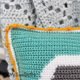 Das Kissenbezug kann aber auch aus Woll- oder Baumwollgarn hergestellt werden, sofern das Garn für Häkelnadel Stärke 3,5 mm geeignet ist.