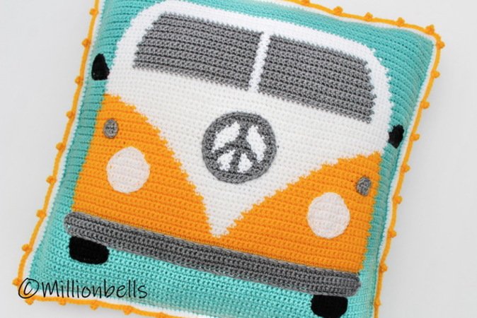 Mit dieser PDF Anleitung häkeln Sie schnell und einfach, einen Kissenbezug mit einem klassischen Bus auf der Vorderseite, wie abgebildet. Ein tolles Geschenk für jeden Bus-fan!