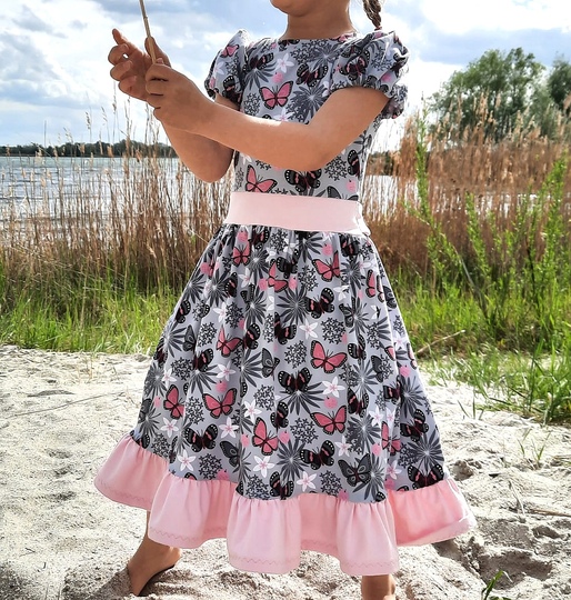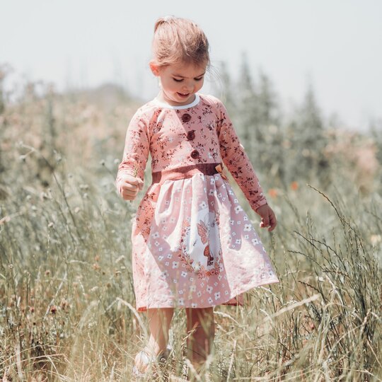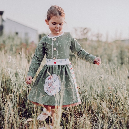 Das Mini&Me Girls Dream Dress ist ein absolutes Traumkleid füe kleine und große Prinzessinnen. Durch seine vielen Möglichkeiten kannst du es von ganz schlicht mit einfachem Oberteil und ganz schlichtem Rockteil, über verspielt mit Volants an Ärmeln und Rockteil bis hin bis zum festlichen Dirndl nähen.