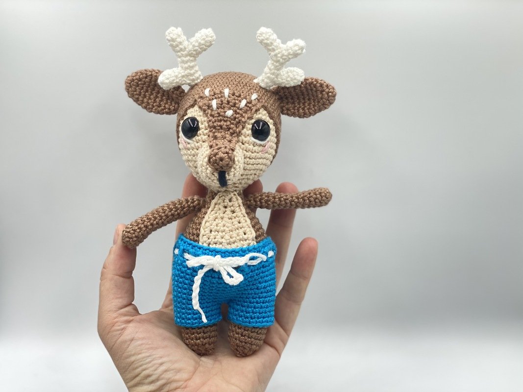 Mit dieser Häkelanleitung kannst du sehr einfach diesen süßen Hirsch nachhäkeln. Super geeignet als kleines Geschenk für deine Kinder / Nichten / Neffen oder auch bei Babyparties.