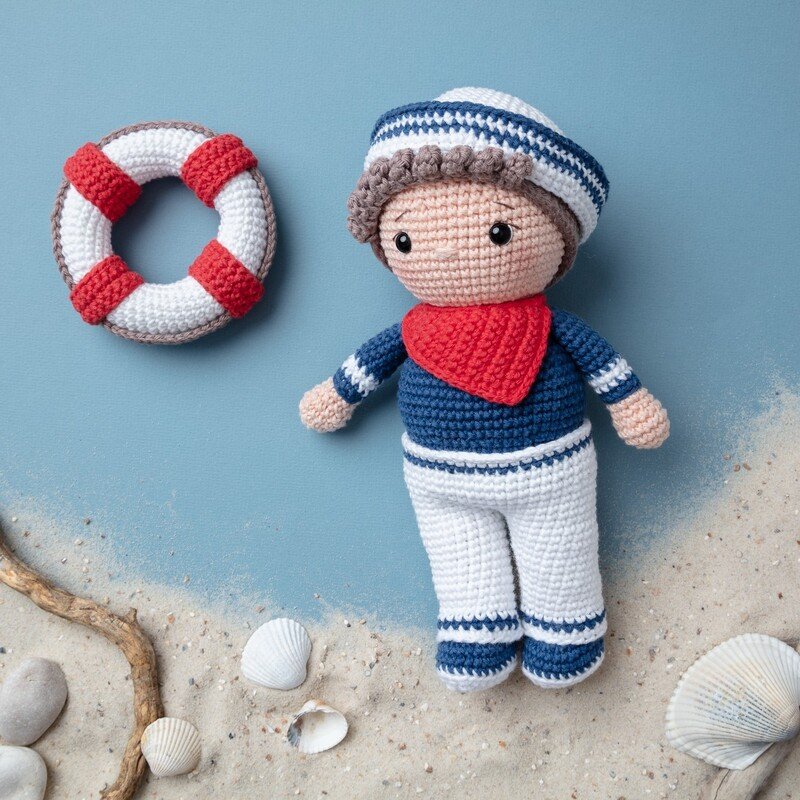 Die ist eine digitale, deutschsprachige Häkelanleitung für den Matrosen Matts mit seinem Rettungsring. Die Anleitung enthält viele Detailfotos und eine ausführliche Beschreibung der einzelnen Arbeitsschritte. Die Figur kann daher auch von Anfänger/innen gut nachgearbeitet werden. Häkelgrundkenntnisse sollten jedoch vorhanden sein.