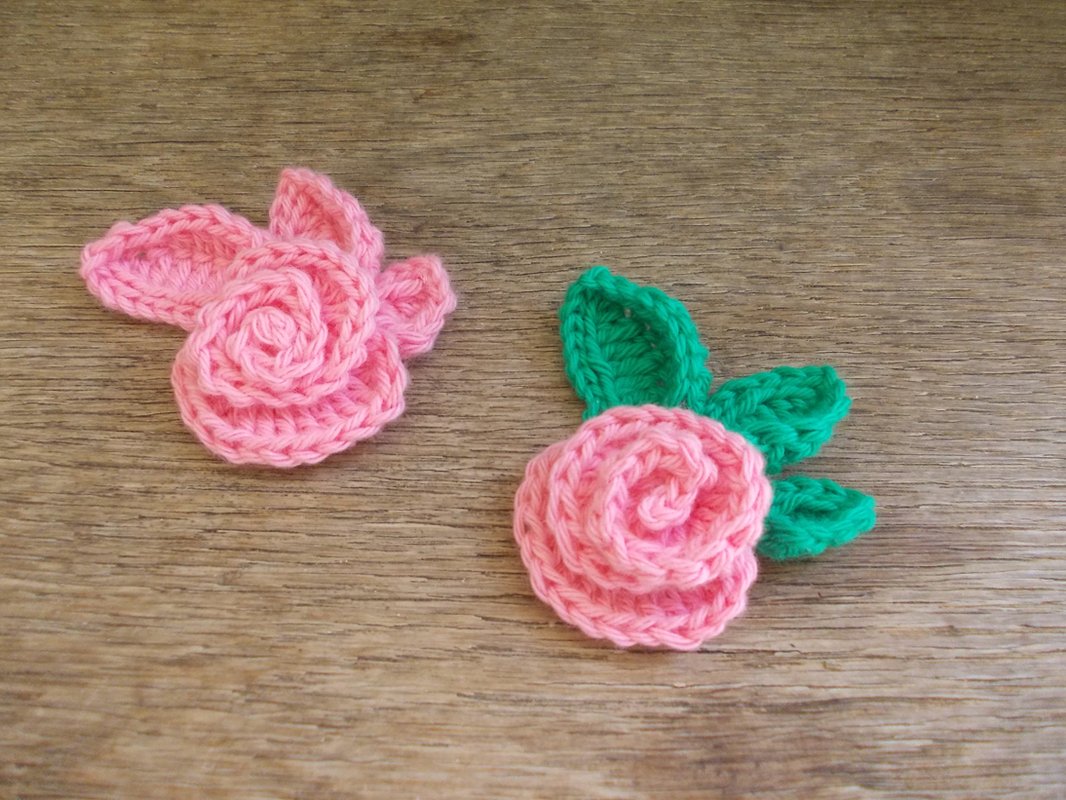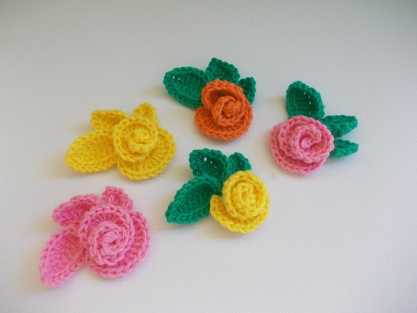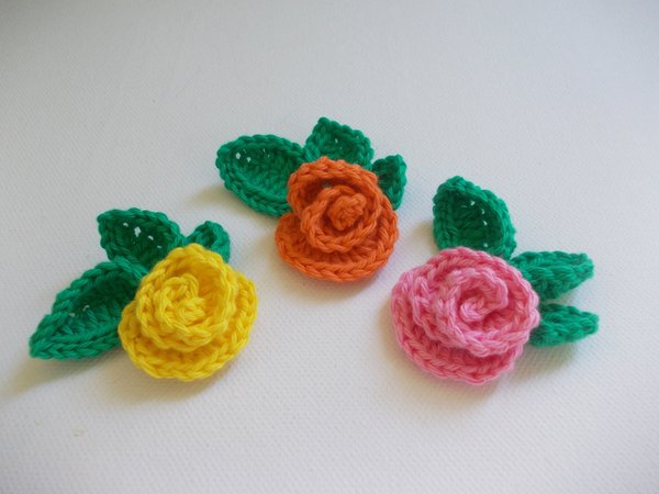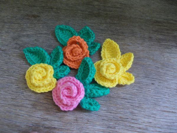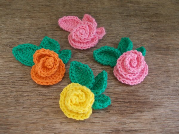 Durchmesser der Rosen mit Blättern 6 - 7 cm, bei dickerem Garn entsprechend größer.