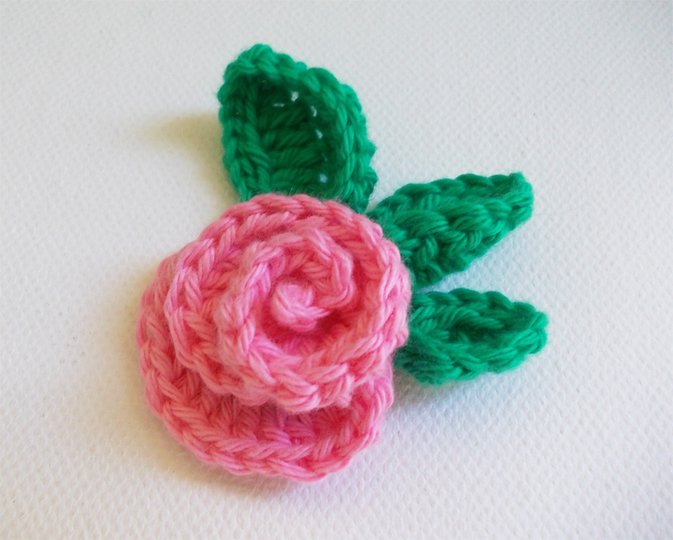Häkelblumen sind eine Leidenschaft von mir und auch diese Rose mit 3 Blättern habe ich mir selbst ausgedacht.