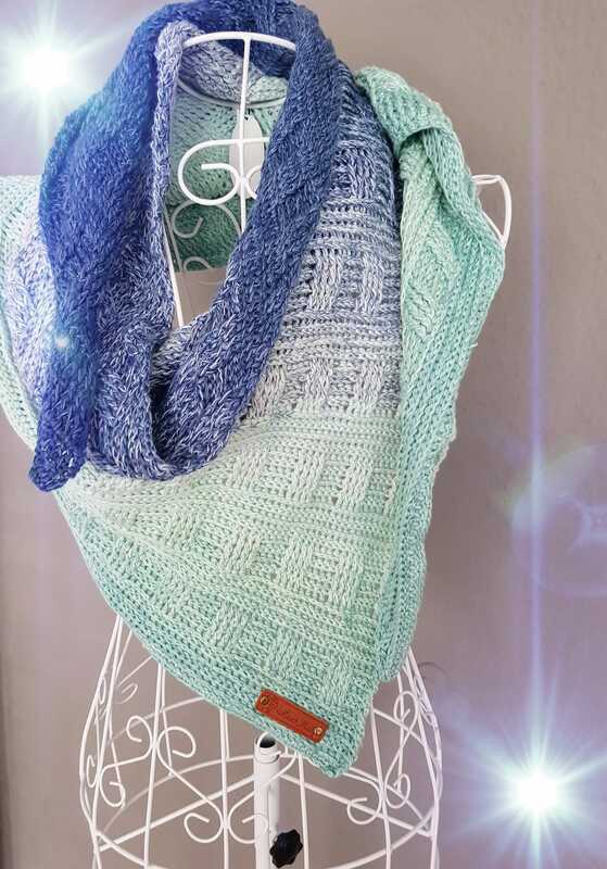 Das Tuch kann in jeder beliebigen Größe gehäkelt werden. Reliefstäbchen sind kleine Garnfresser und eine Lauflänge ab 1200 und mehr ist zu empfehlen.