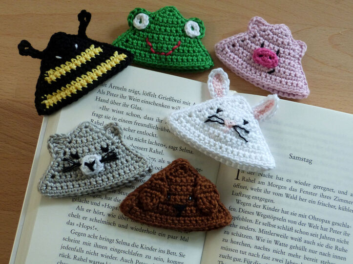 Die Anleitung zeigt dir, wie du ganz schnell und einfach eines der putzigen Modelle Hund, Katze, Biene, Frosch, Schwein oder Kaninchen häkeln kannst.