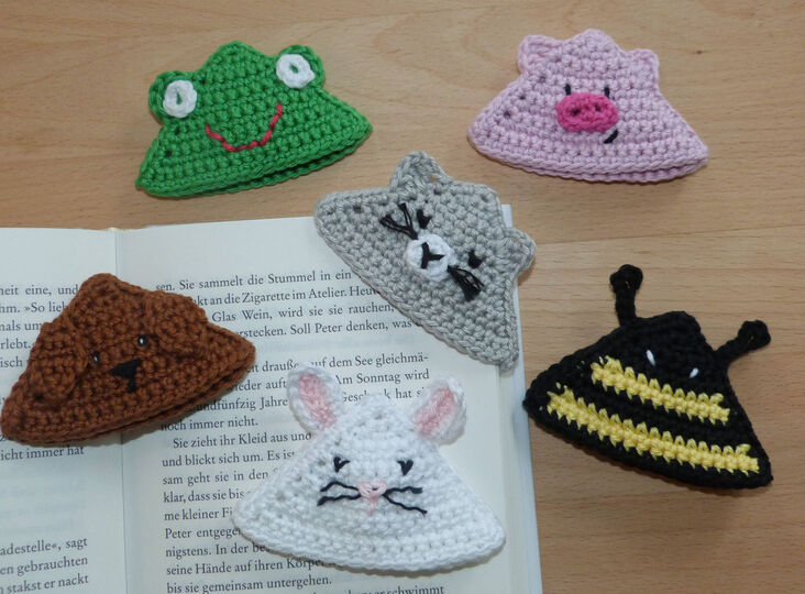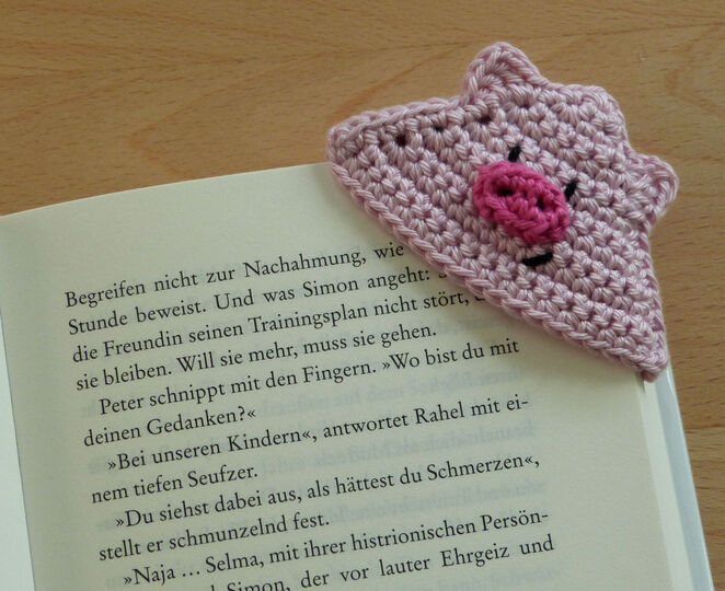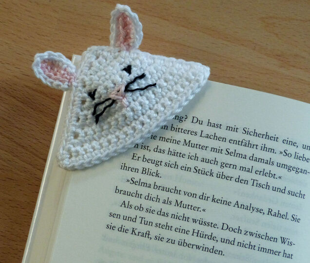 Dann häkel dir doch ein lustiges Lesezeichen in Form eines Eckenguckers. Das Ecken-Lesezeichen wird auf die Buchecke oder ein paar ausgewählte Buchseiten gesteckt und zeigt an, wo du weiterlesen musst.