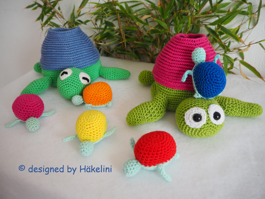 Mit dieser Anleitung kannst du dir diese Schildkröte samt Babys ganz einfach häkeln.