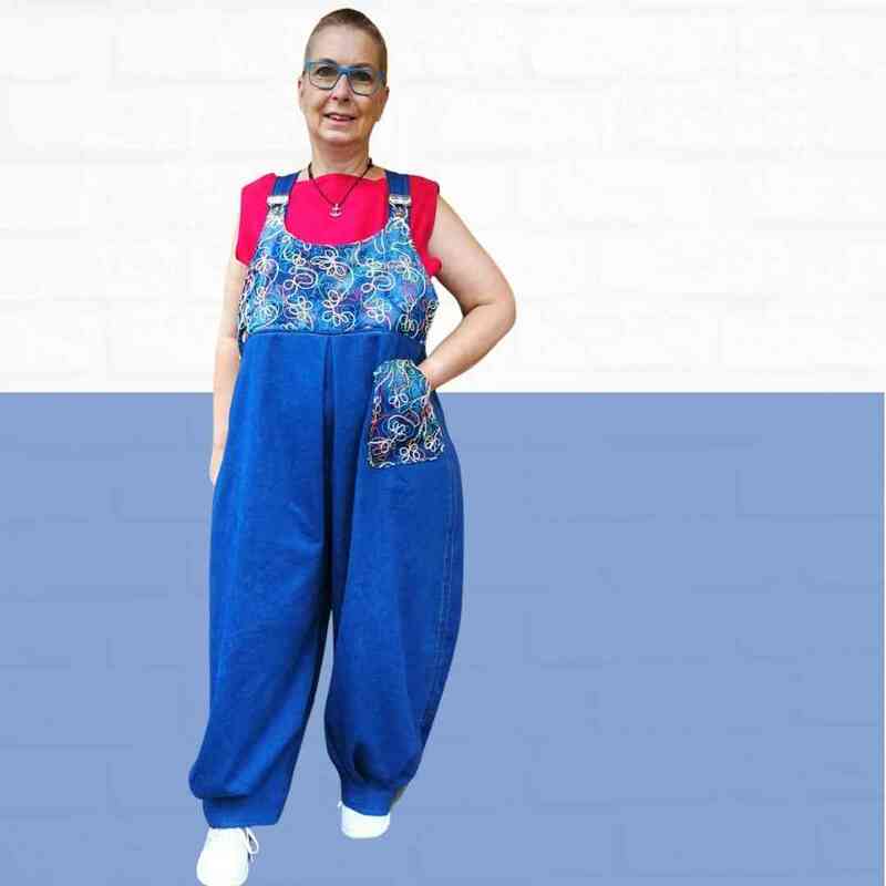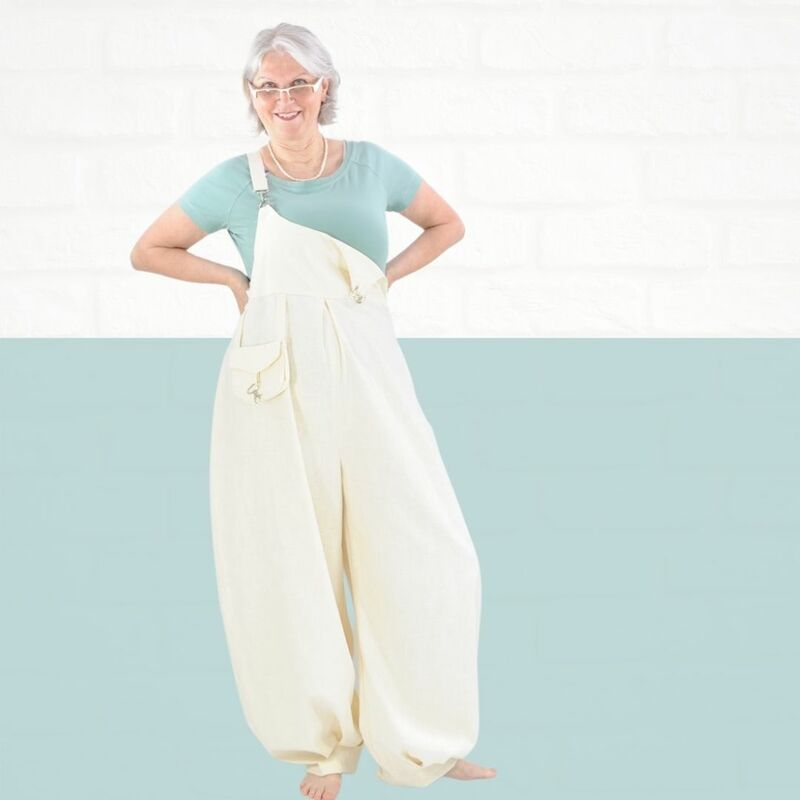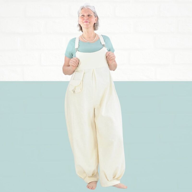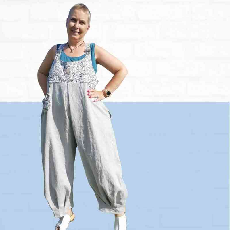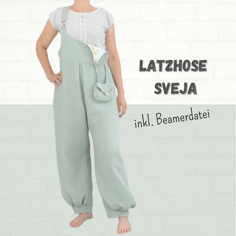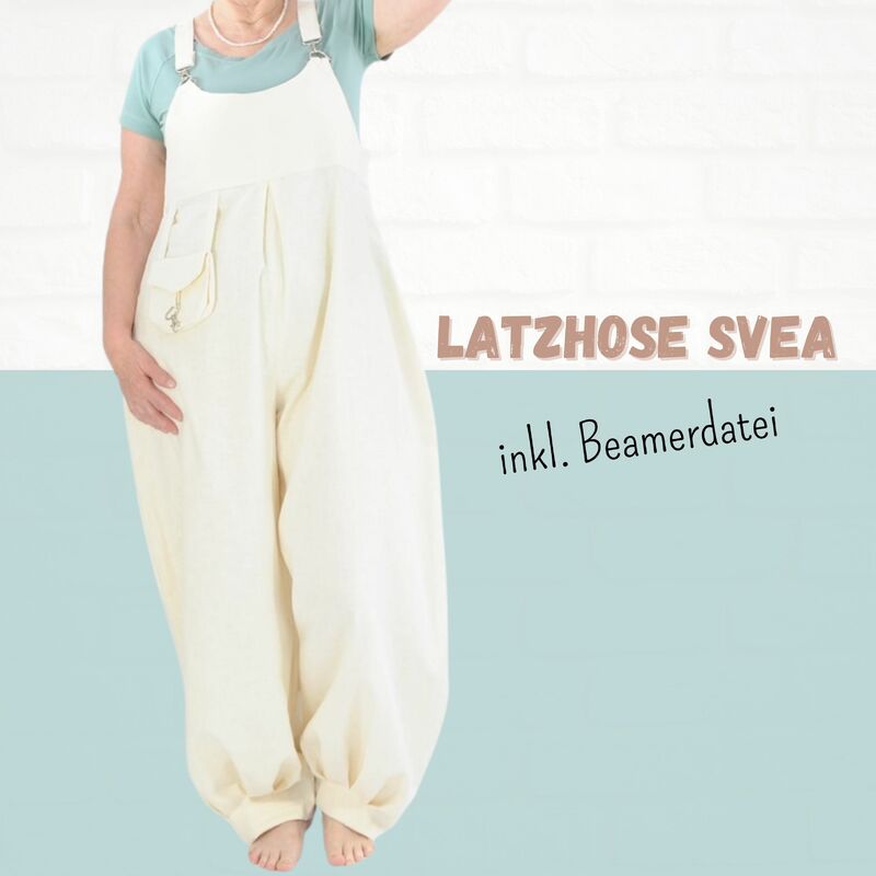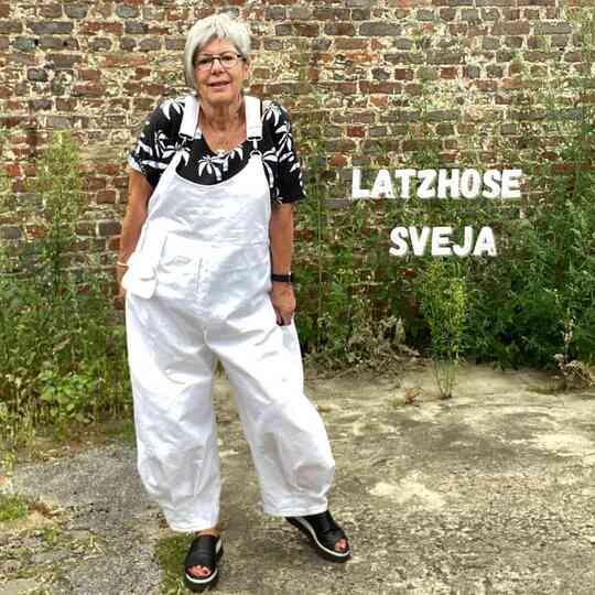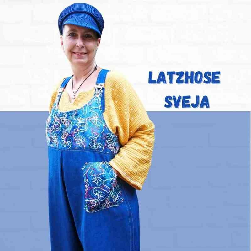 Mit dem Schnittmuster Sveja nähst Du Dir eine freche Latzhose bei der ein kleines Täschen als Add-On dabei ist. Es wird erklärt, wie Du den Schnitt an eine Figur / Größe anpassen kannst. Die Latzhose wird aus Webware genäht, wenn Du sehr kurvig bist, sollest Du einen Reißverschluss an der Seite einnähen, ansonsten kannst Du auch so rein und rauschlüpfen.