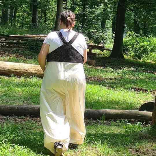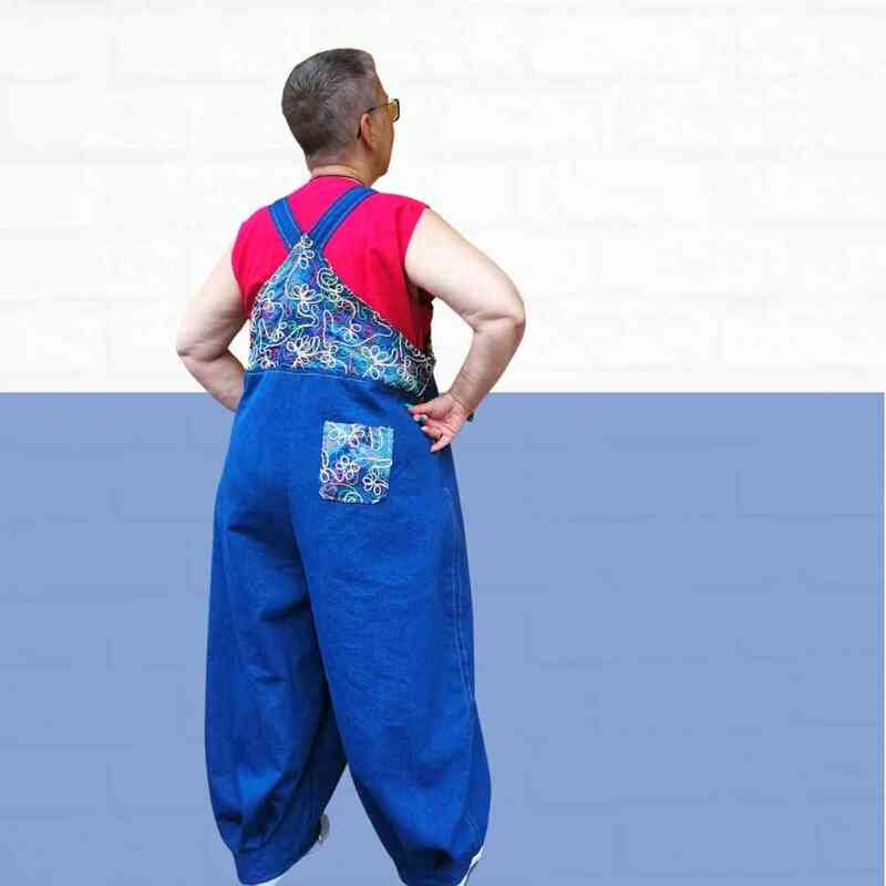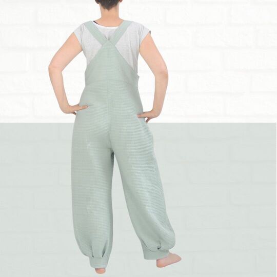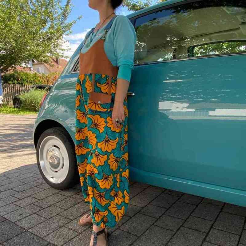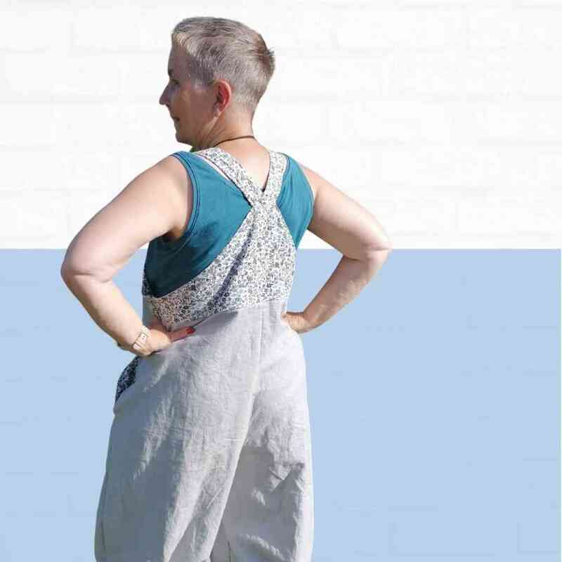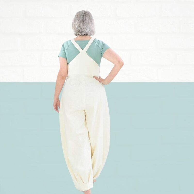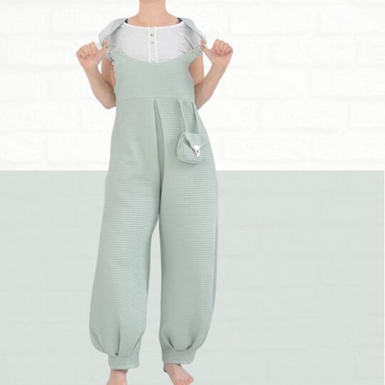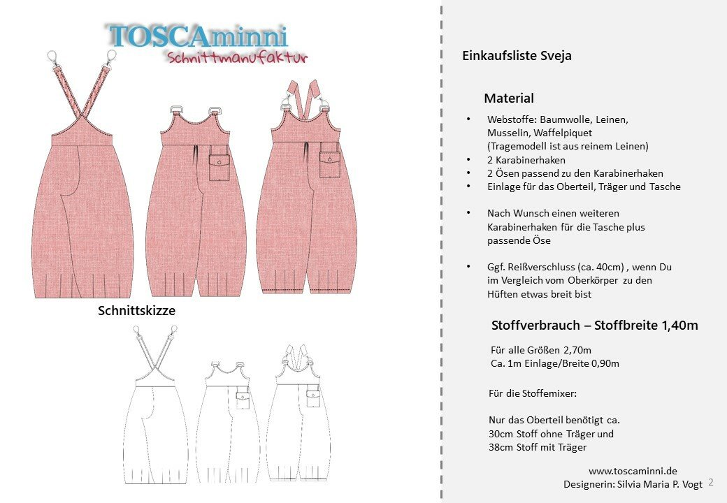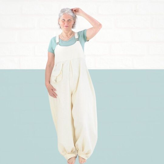 Mit dem Schnittmuster Sveja nähst Du Dir eine freche Latzhose bei der ein kleines Täschen als Add-On dabei ist. Es wird erklärt, wie Du den Schnitt an eine Figur / Größe anpassen kannst. Die Latzhose wird aus Webware genäht, wenn Du sehr kurvig bist, sollest Du einen Reißverschluss an der Seite einnähen, ansonsten kannst Du auch so rein und rauschlüpfen.