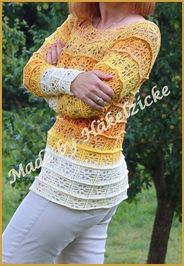 Magic Flowers ist ein Toller Pulli für alle Jahreszeiten, je nach gewählter Wolle. Du kannst Ihn mit beliebiger Wolle häkeln, da in RVO gearbeitet wird. Die hübschen Blüten entstehen ganz nebenbei beim Häkeln und machen Dein neues Lieblingsstück zu einem Hingucker.