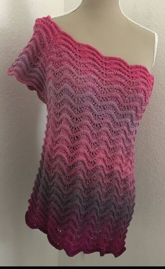 Hier habe ich eine raffinierte Tunika, die von der einen Schulter und unter den anderen Arm angefangen wird.