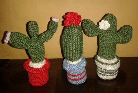 Ich habe nur dünne Wolle verwendet, mit dickerer Wolle werden die Kakteen etwa doppelt so groß und breit.
