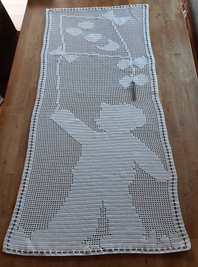 Ich könnte mir den Tischläufer auch sehr gut als Wandbehang vorstellen, oder als lange Gardine an einer Terrassentür.