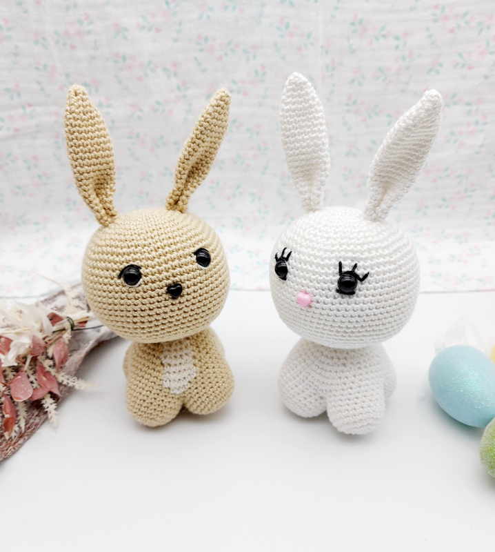 Ihr könnt euch den Hasen einfarbig häkeln oder mit einer hellen Brust. Beide Varianten sind ausführlich erklärt.