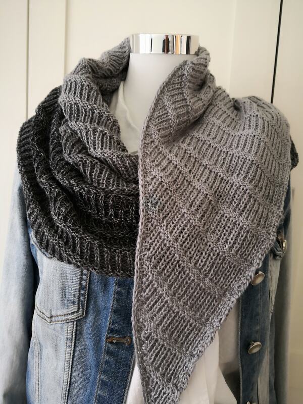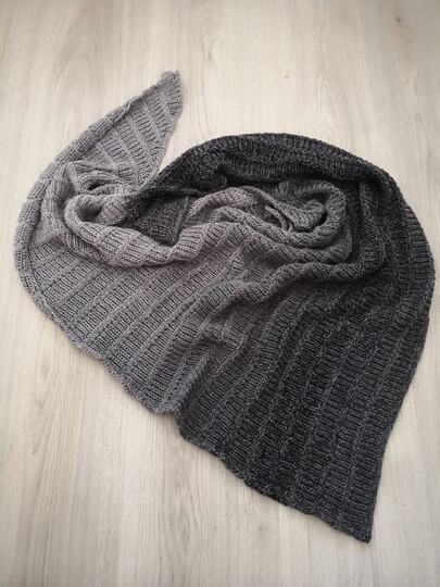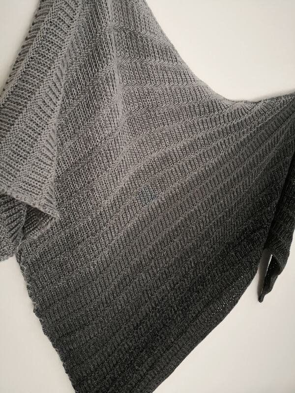 Im Beispieltuch wurde der Farbverlaufsbobbel „Liesl by Joel XL Version “ in 4 fädig mit 1100 Meter Lauflänge verwendet.