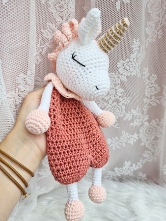 Das Einhorn wird mit der o.g. Wolle ca. 32 cm groß (von Horn – Fuß gemessen).