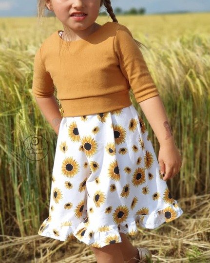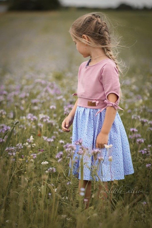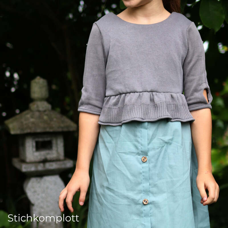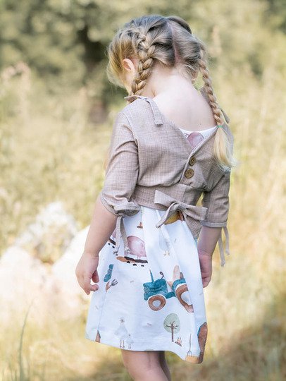 Bei diesem Schnitt handelt es sich um das Cropped Top Juna. Dieser Schnitt ist ein kurzer Shirt zum überziehen zu diversen Ärmellosen Sommerkleidern und Tops gedacht ist. Juna bringt 3 Armlängen. Das Taillenbündchen kann optional gegen einen Volant getauscht werden. Der tiefe Rückenausschnitt mit seiner Zierknopfleiste ist ein richtiger hingucker. Das Schnittmuster ist für standhafte dehnbare Stoffe wie z.B. fester Jersey oder French Terry (Sommersweat) gedacht.