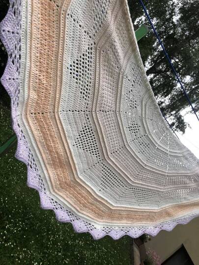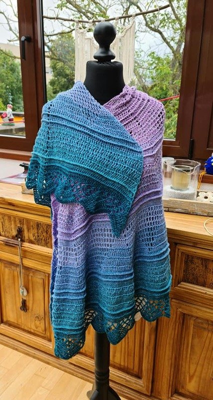 Um den Zeitpunkt des "Beltane" Festes kam mir die Idee zu diesem kuscheligen Tuch, welches leicht zu arbeiten ist.