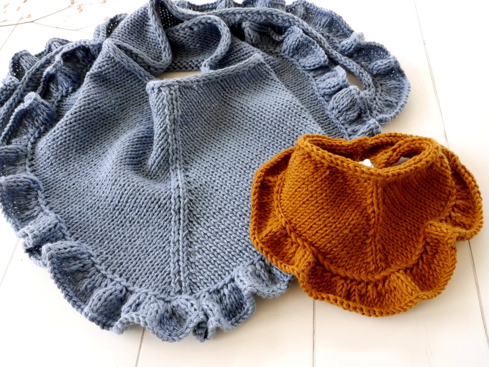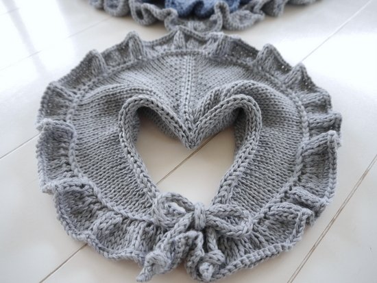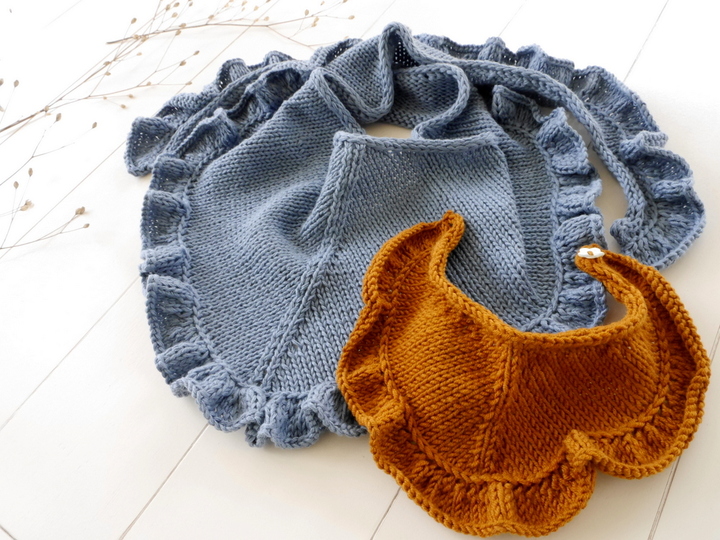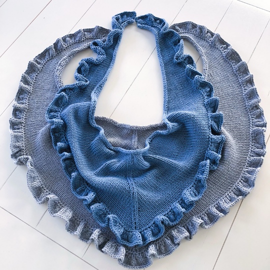 Tuch HOLLY und Little HOLLY wird nahtlos von oben nach unten in Reihen gestrickt. Es wird oben in der Mitte gestartet und durch Zunahmen bis zu der gewünschten Größe gestrickt. Nach einer Reihe mit quergestricken Maschen verleiht das zauberhafte Rufflemuster dem Tuch das gewisse Etwas. Um HOLLY einen perfekten Abschluss zu geben, wurde noch eine I-Cord-Umrandung gestrickt.
