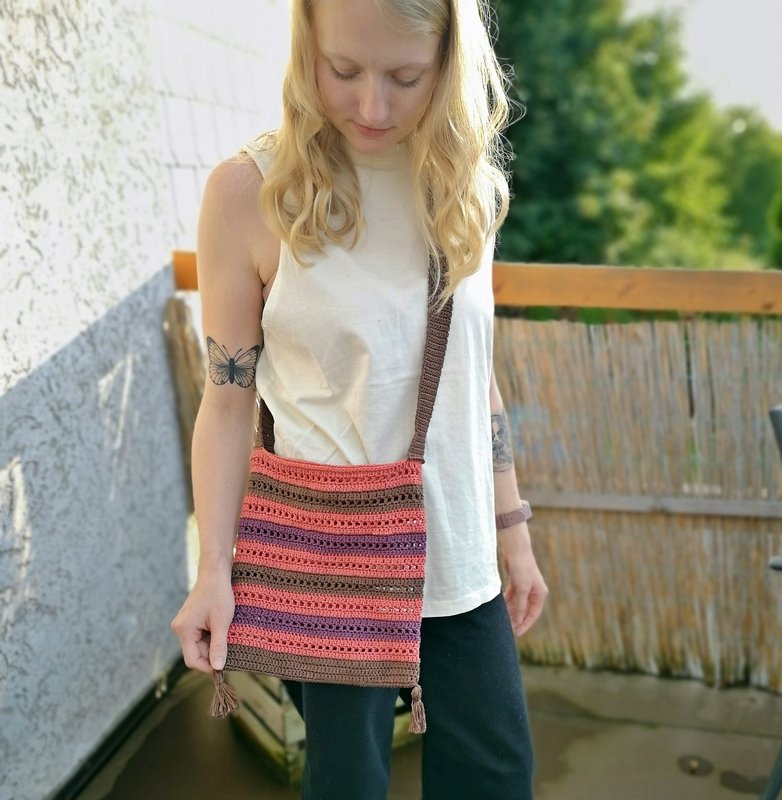 Wenn du die ersten Häkelmaschen kannst, ist diese Tasche für dich oder einen lieben Menschen genau das richtige Anfänger- Projekt.