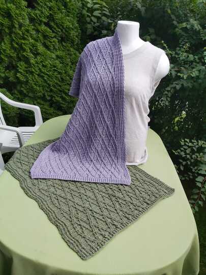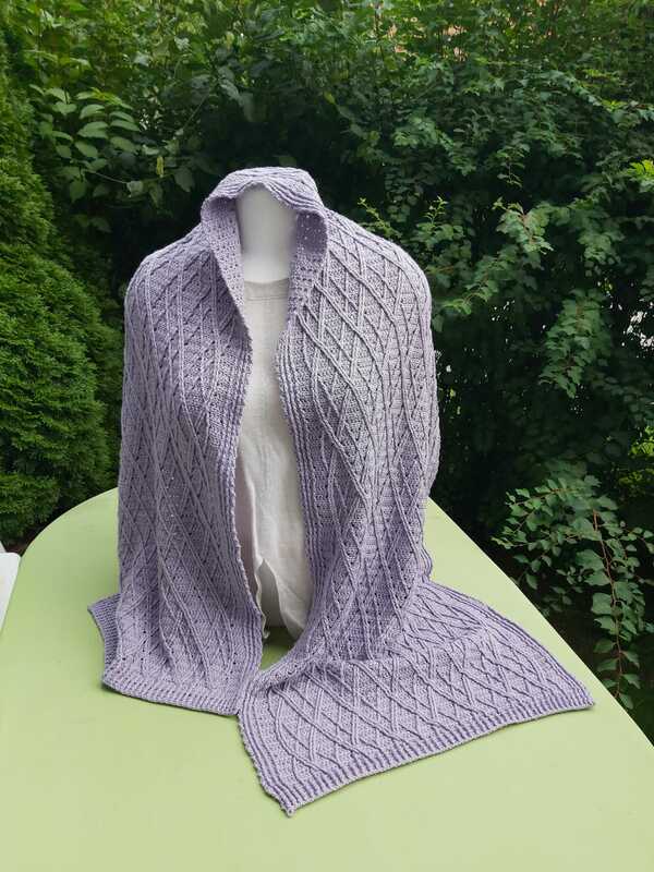 Die Stola kann in jeder beleibigen Größe gearbeitet werden. Empfohlen wird hier eine mindestlänge von 1,80m