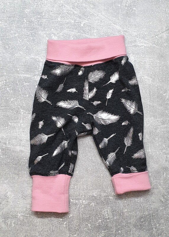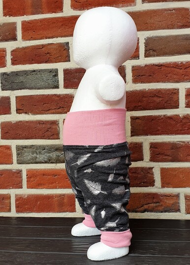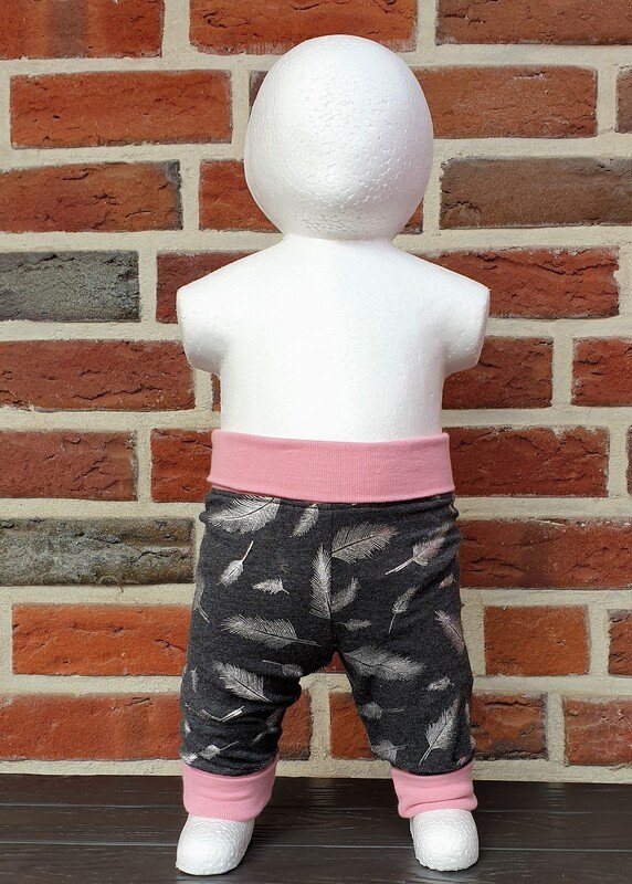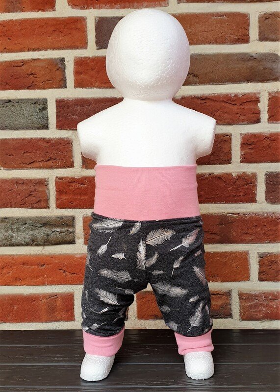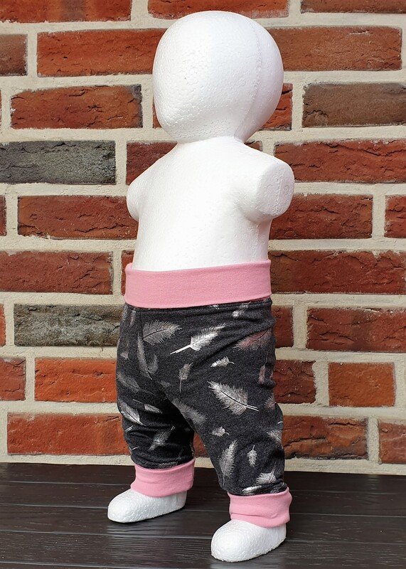 Das Schnittmuster „Lena“ ist eine bequeme Babyhose, die aus Jersey oder Sweatware genäht wird. Die Babyhose kann entweder mit einem Gummiband in der Taille oder einem Bündchen aus Jersey- oder Strickware gefertigt werden. Das Taillenbündchen kann entweder als einfaches Hosenbündchen oder als Mitwachsbündchen genäht werden.