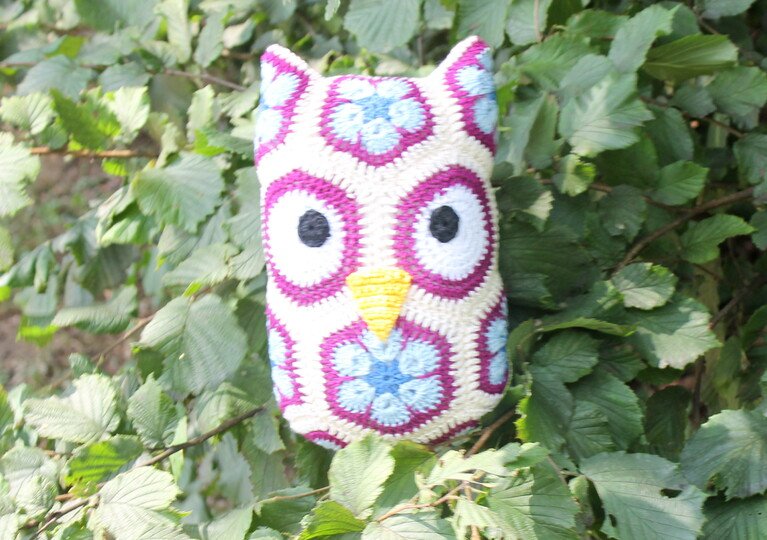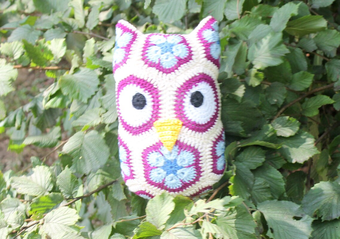 Dieses kleine Eulenkissen ist sowohl schön als Dekoration auf der Couch, macht sich aber auch super als Kuschelkissen.
