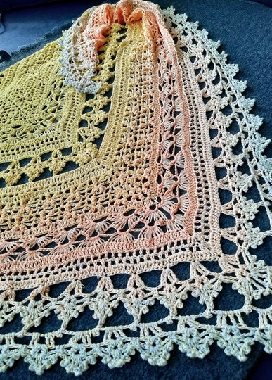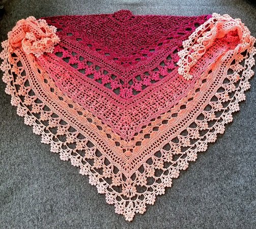 gewendet und in der üblichen Weise in Dreiecksform gehäkelt.