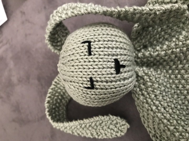 Der fertig gestrickte Hase hat eine Höhe von ca. 28 cm