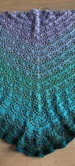 Das Tuch wird in Reihen gehäkelt. Nach jeder Reihe wird gewendet.