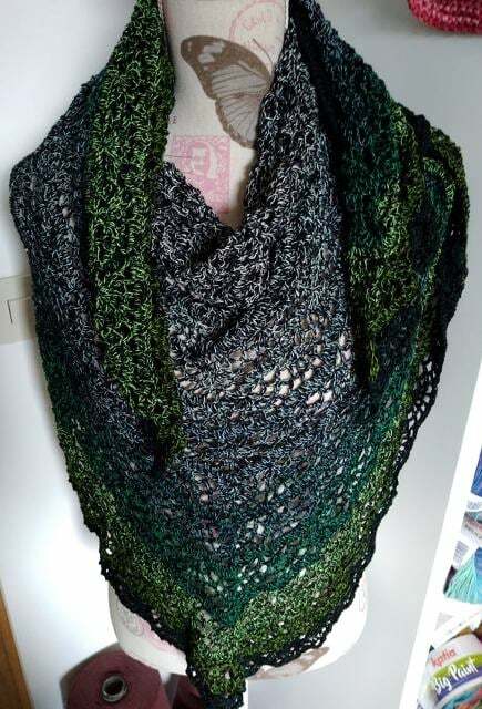 Das Tuch wird mit einem 3‐fädigen Bobbel gehäkelt.
