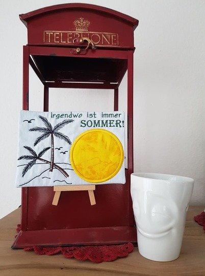 Stickdatei Palmen Srand und Meer als Untersetzer,
