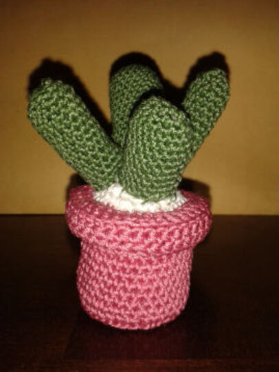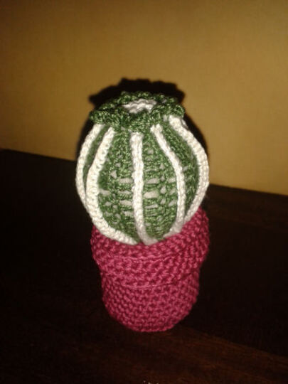 Ich habe nur dünne Wolle verwendet, mit dickerer Wolle werden die Kakteen etwa doppelt so groß und breit.