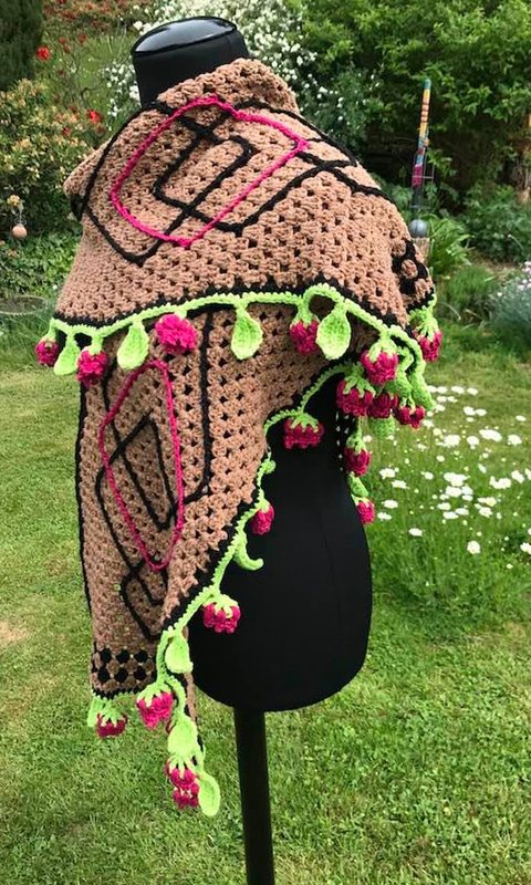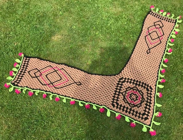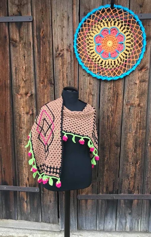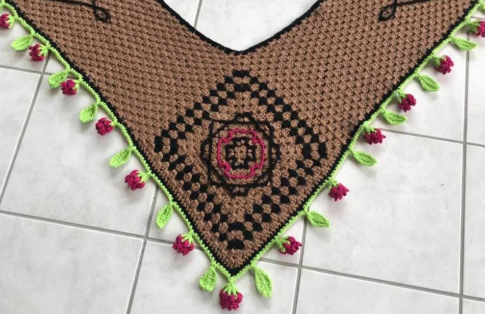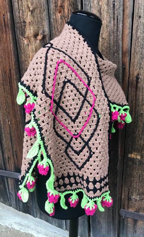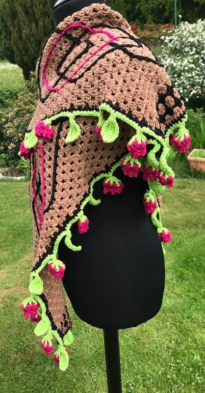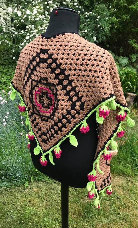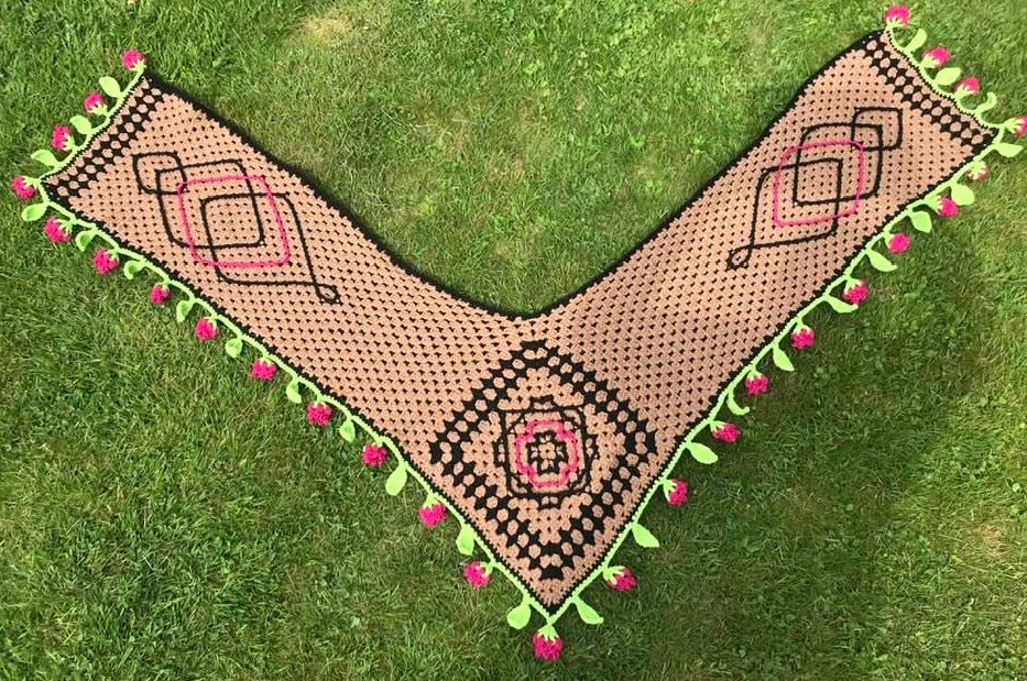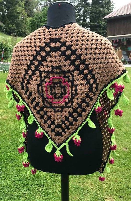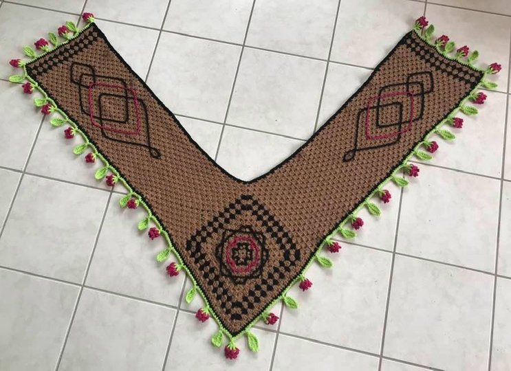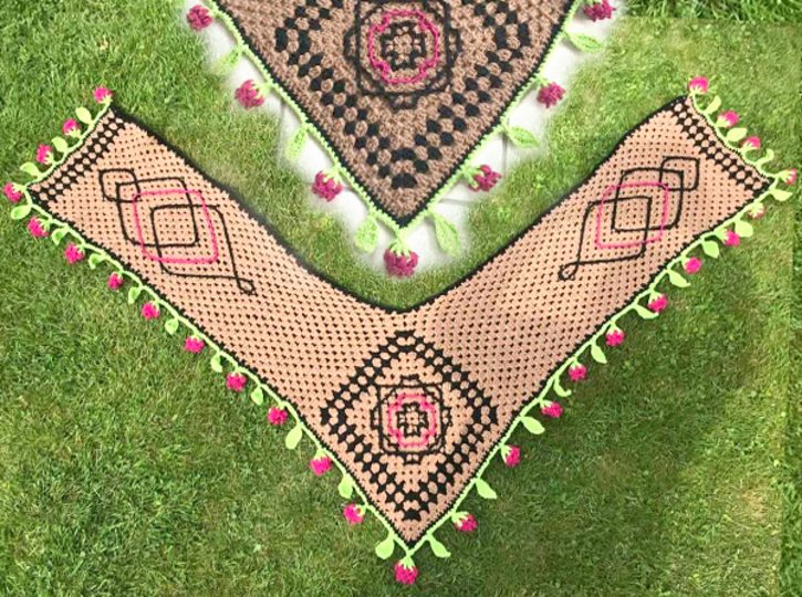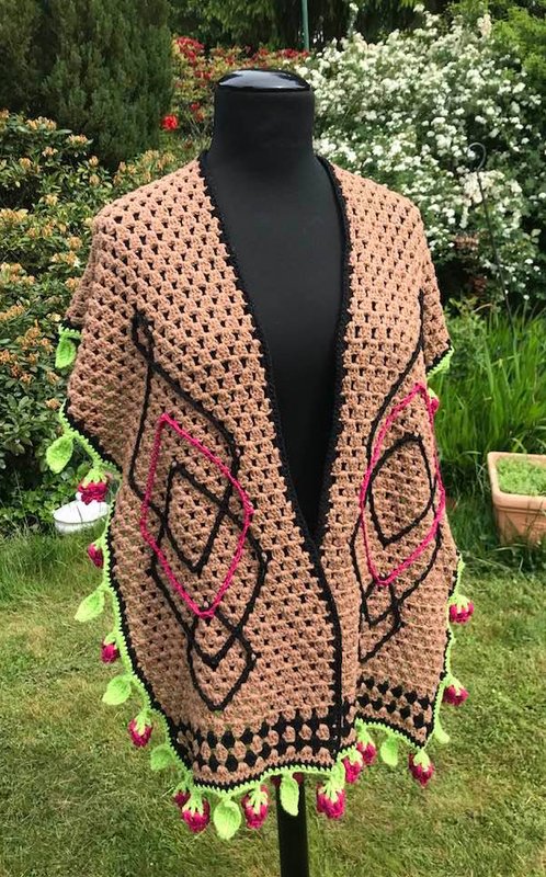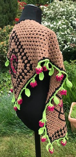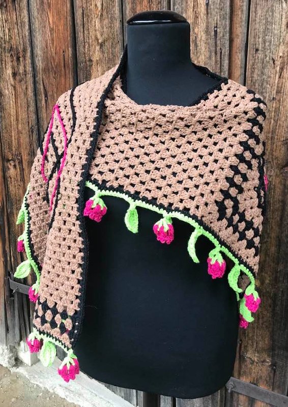 Tuch/Stola mIt Rosenknospen mit der einmaligen Rosenknospenborte ist ein echter Hingucker. Das Tuch selber ist eher einfach und die Borte ist raffiniert.