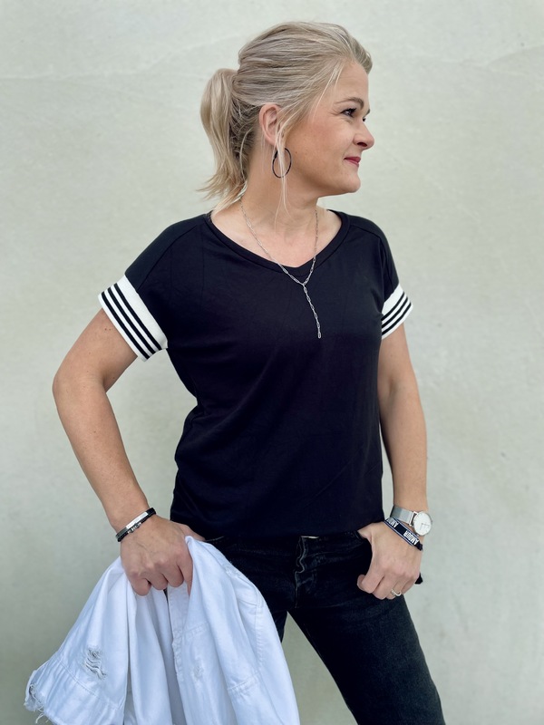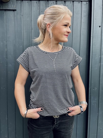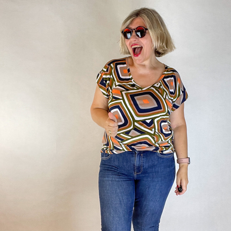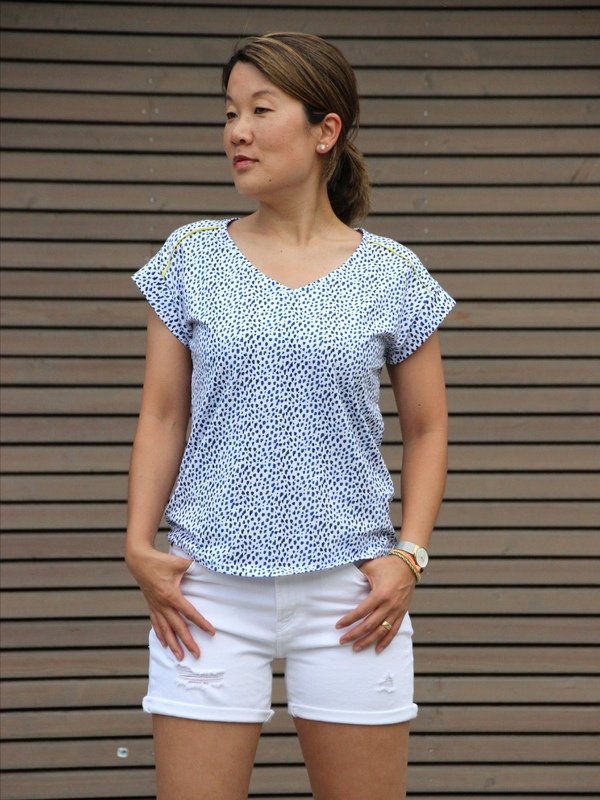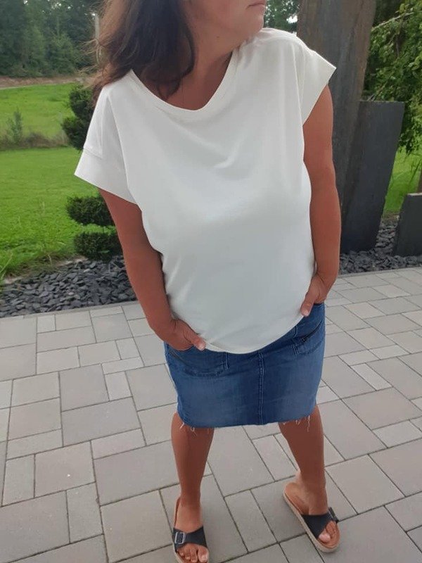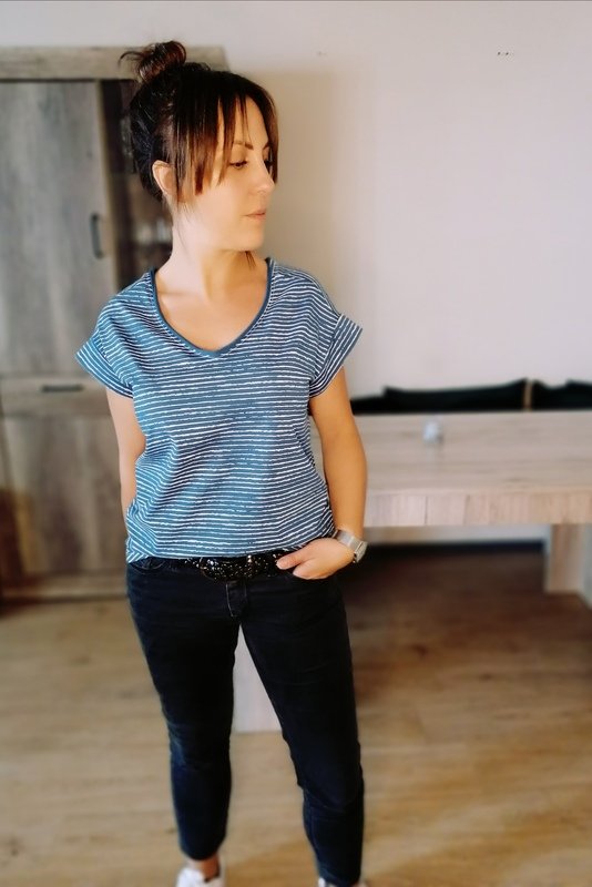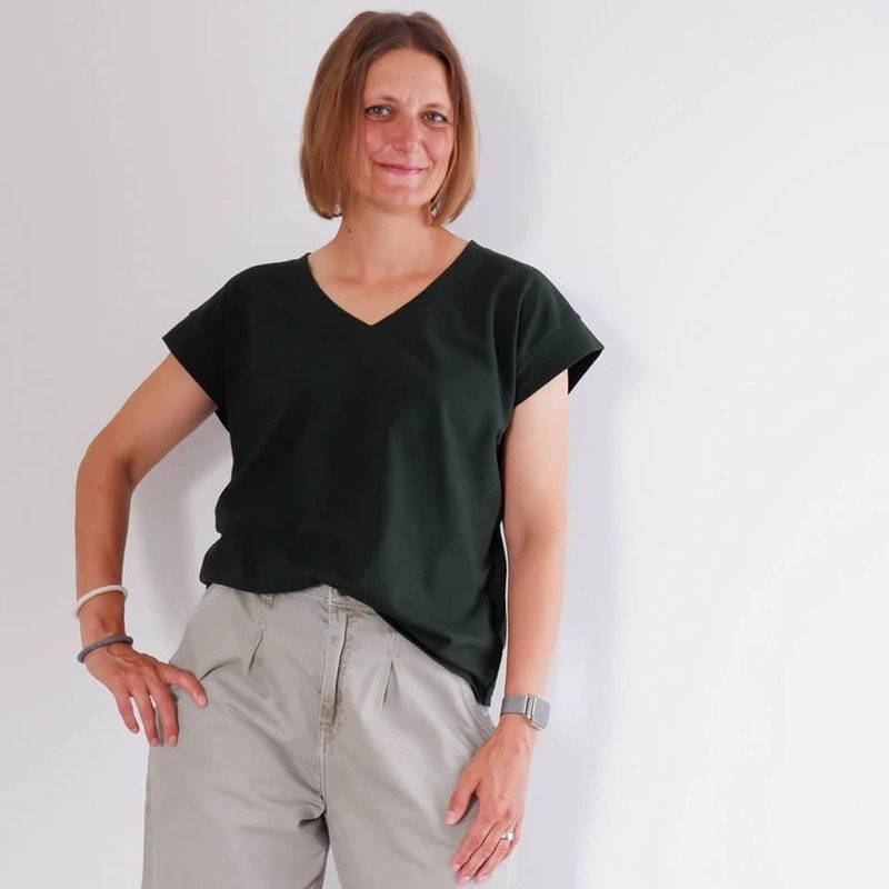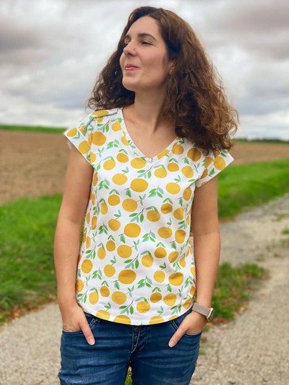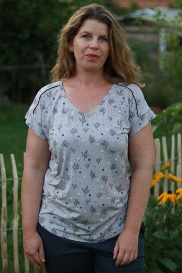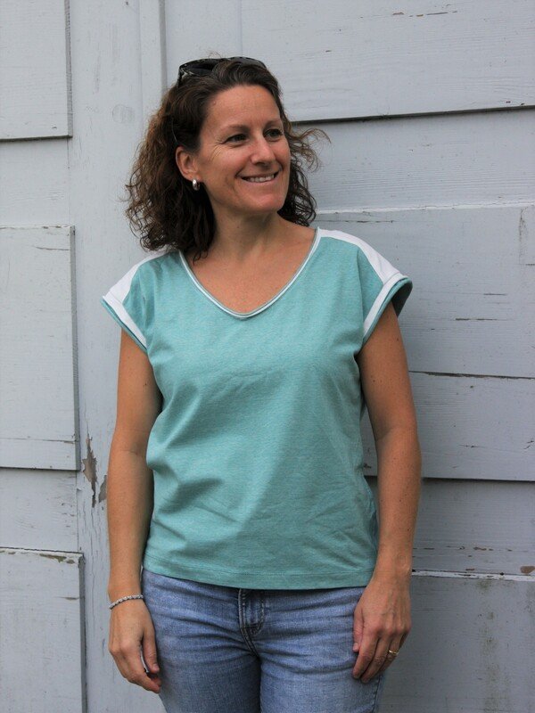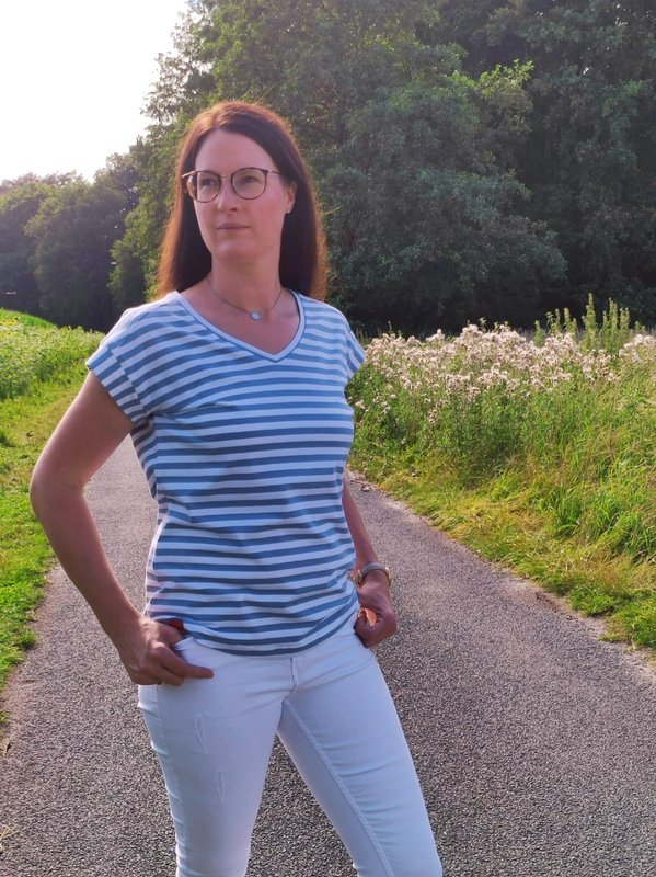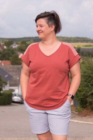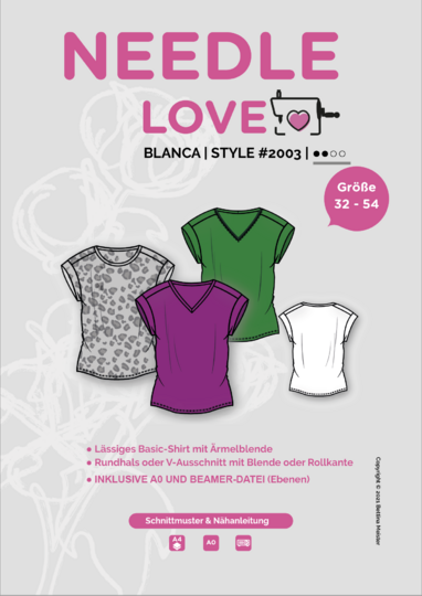 Rundhals, V-Ausschnitt oder V-Ausschnitt mit Rollkante, BLANCA ist extrem schnell genäht. Es ist ein toller Allrounder, den man super unter Cardigans, Blazer, etc. anziehen kann.