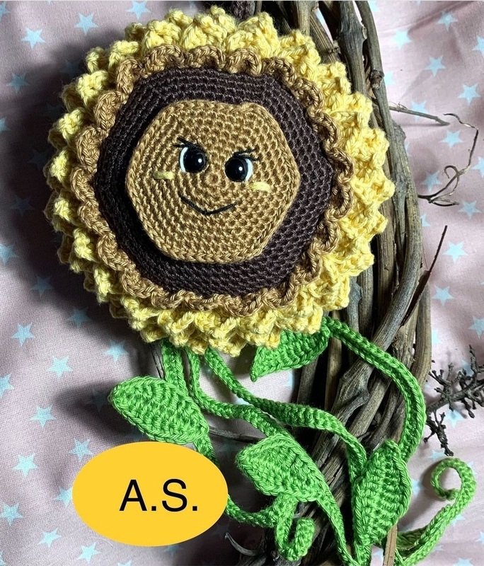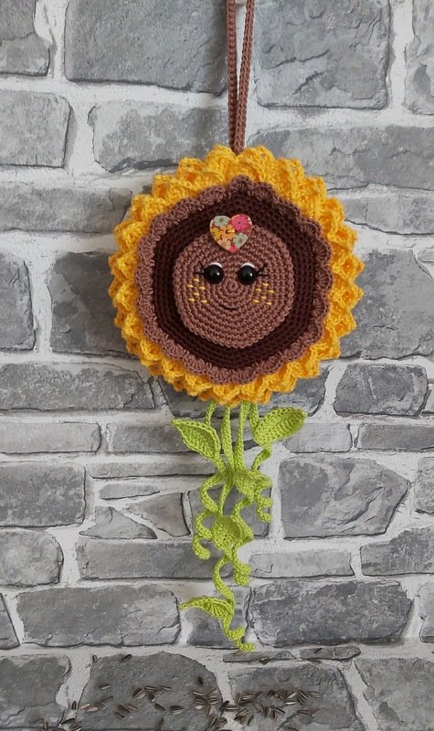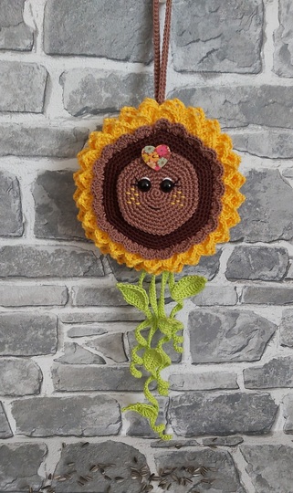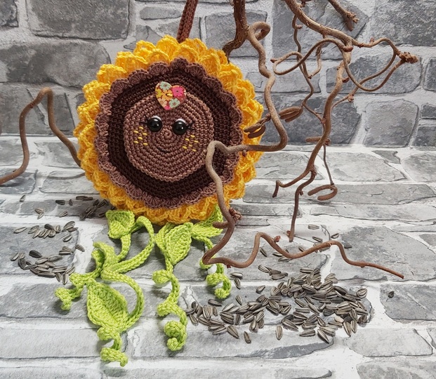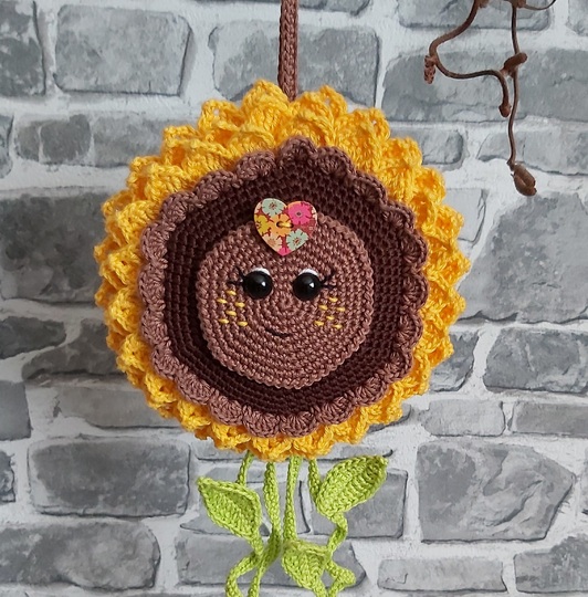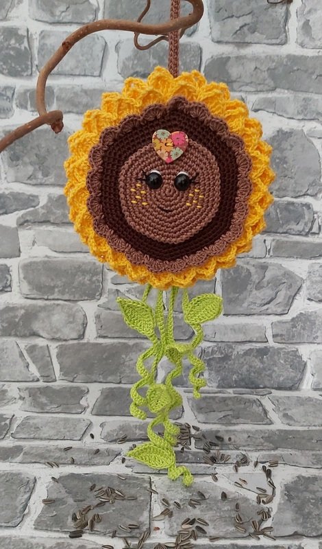 Das Sonnenblümchen wurde mit Baumwollgarn (50g-125m) und einer 2,5 Nadel gehäkelt.