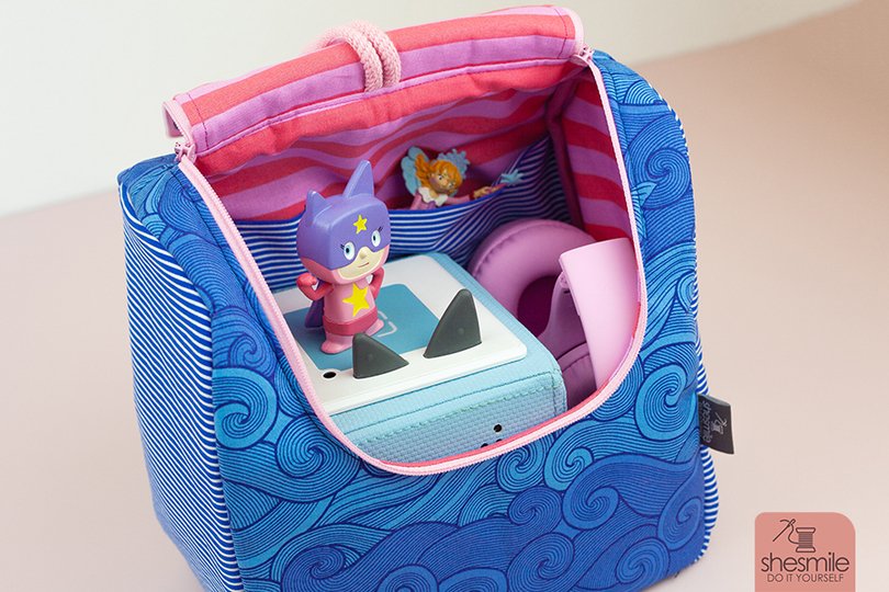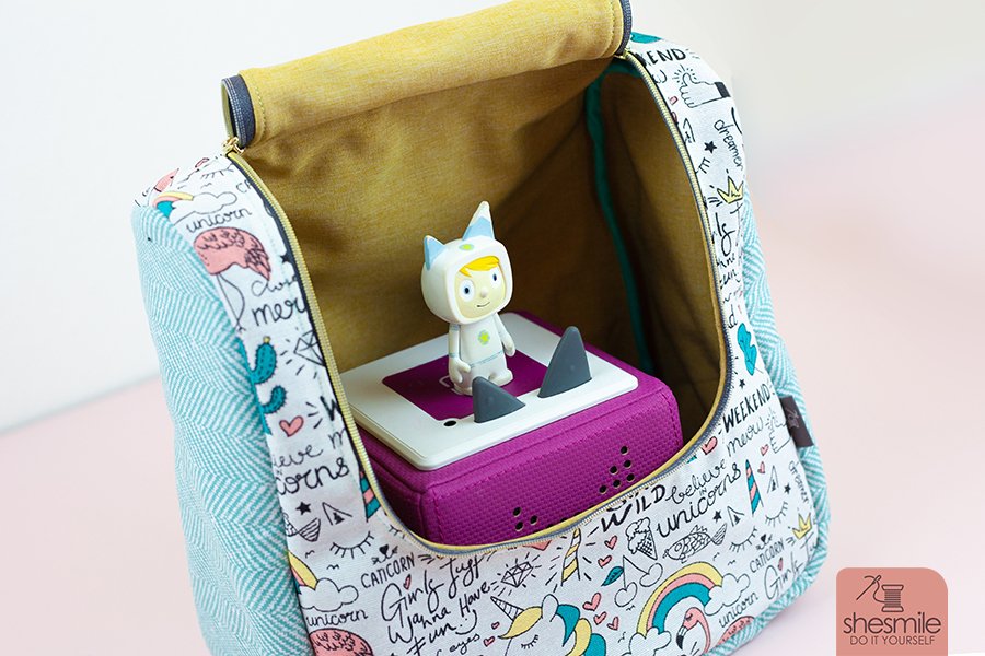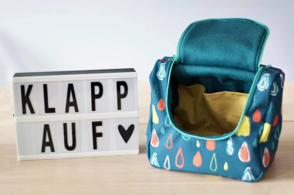 Als Kulturtasche, Kosmetiktasche, Transporttasche oder Rucksack für die Toniebox, Lenkertasche, Kindergarten-Rucksack, Lunchtasche, Picknick-Tasche oder Wickeltasche ... die geräumige Tasche "KlappAuf" mit praktischer Klappe zum Öffnen nach oben ist vielseitig einsetzbar.