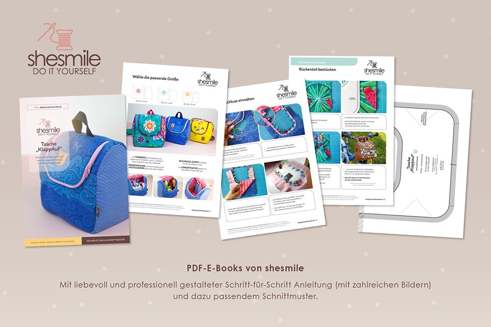 PDF-E-Books von shesmile: Diese leicht verständliche Schritt-für-Schritt-Anleitung mit vielen Fotos ist auch für Nähanfänger geeignet, denn die sehr ausführliche Fotoanleitung begleitet dich bei jedem Schritt.