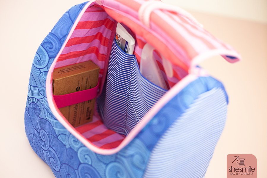 Auch wird im E-Book Schritt-für-Schritt erklärt, wie du am Rand ein Paspelband einnähen kannst, Gummischlaufen als Halterung nähst oder kleine Innentaschen anbringst.