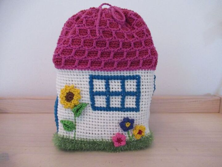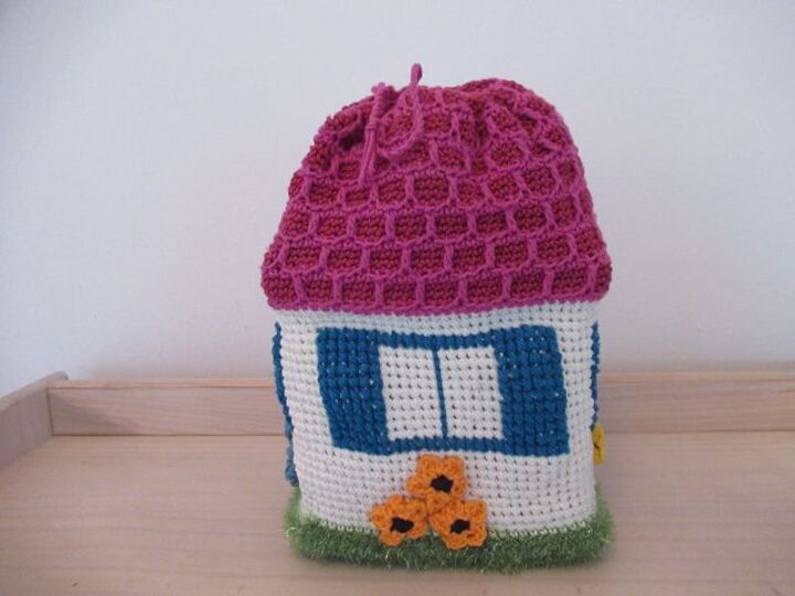 Dieses Häuschen ist nicht nur hübsch, sondern auch praktisch, denn in seinem Inneren werden Spielsachen aufbewahrt: kleine Püppchen, Autos, Bausteine, Schreibutensilien oder auch CDs. So können die Spielsachen überall hin mitgenommen werden und sind sind schnell wieder verstaut und aufgeräumt. Das Häuschen eignet sich auch sehr gut als Geschenkesäckchen.