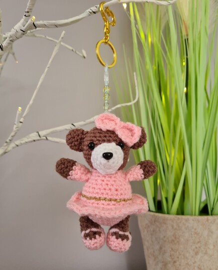 Mit der Lisa Premium Wolle und einer 3.0 Häkelnadel misst der Schlüsselanhänger(das Bärchen) eine Größe von ca. 12 cm Höhe.